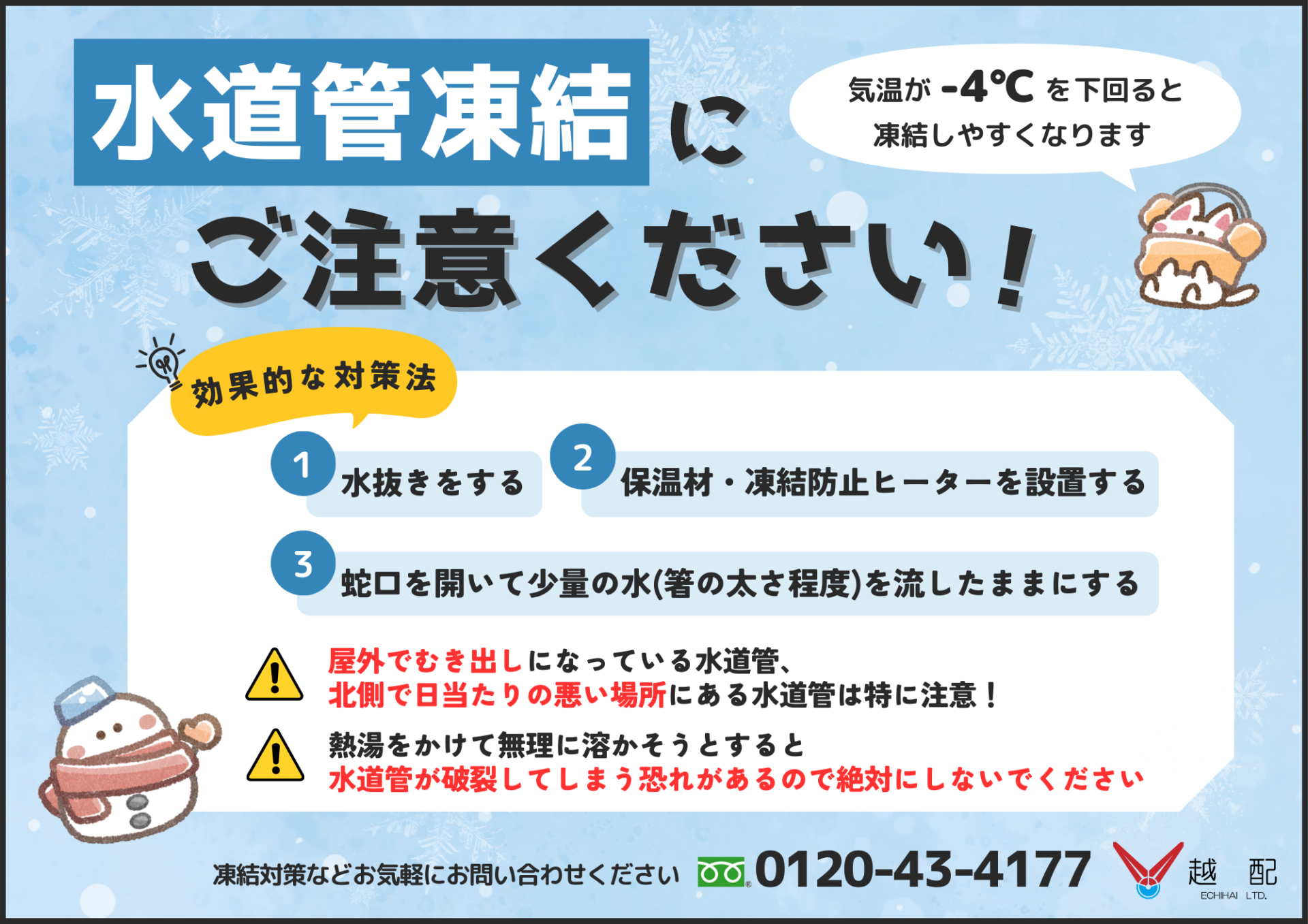 こちら(冬季凍結防止のお願い)もご覧ください。