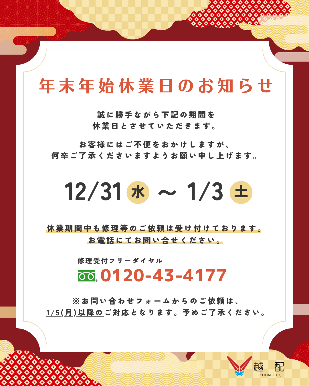 ※お問い合わせフォームからのご依頼は、1/5(月)以降のご対応となります。予めご了承ください。