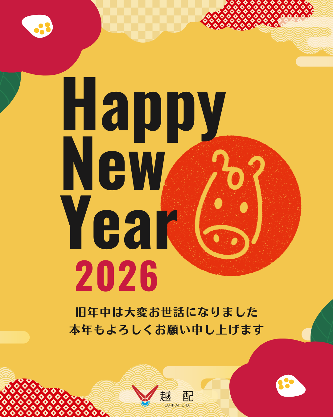 2026-01-05 お知らせ 越配だより 新年のご挨拶 新年あけましておめでとうございます。 旧年中は格別のお引き立てを賜り、誠にありがとうございました。 より一層のサービス向上を目指し、社員一同誠心誠意努めてまいります。 本年も変わらぬご愛顧の程よろしくお願い申し上げます。